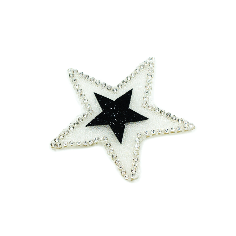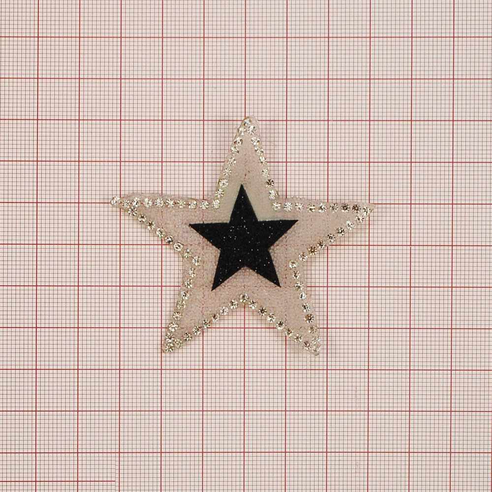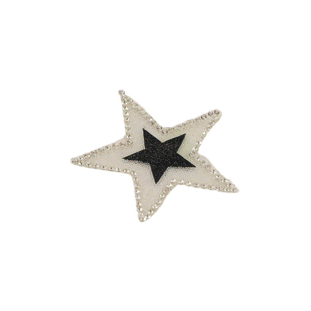 Аппликация клеевая глиттер стразы Звезда черный глиттер, серебро бисер россыпь, белые камни, 6*6см