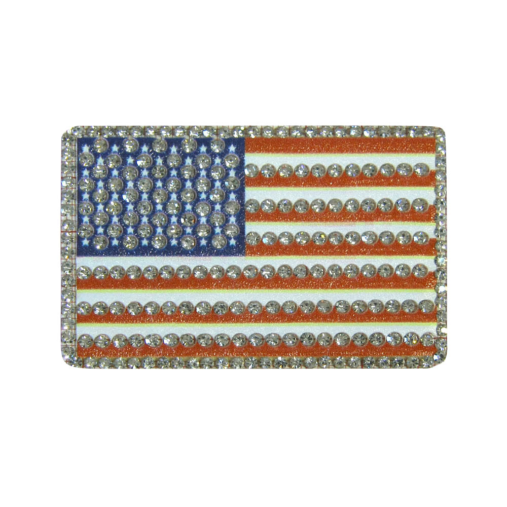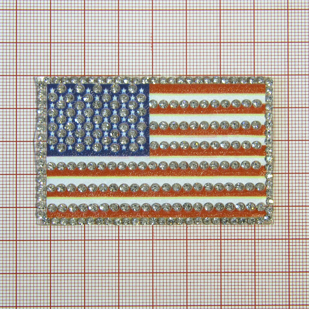Аппликация клеевая кожзам стразы USA Флаг 70*45мм белый, красный, синий, белые камни, шт