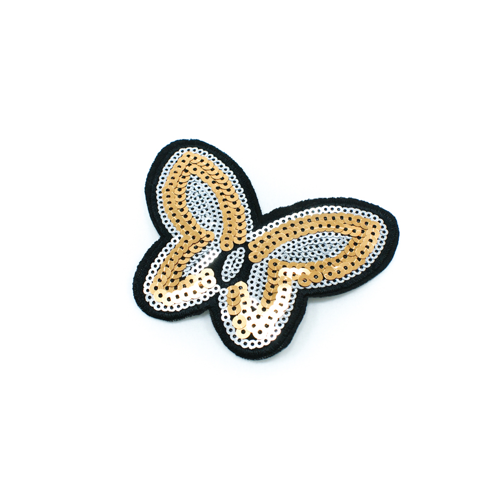 Аппликация клеевая пайетки Бабочка без усиков 10*8см золотые и серые пайетки, шт