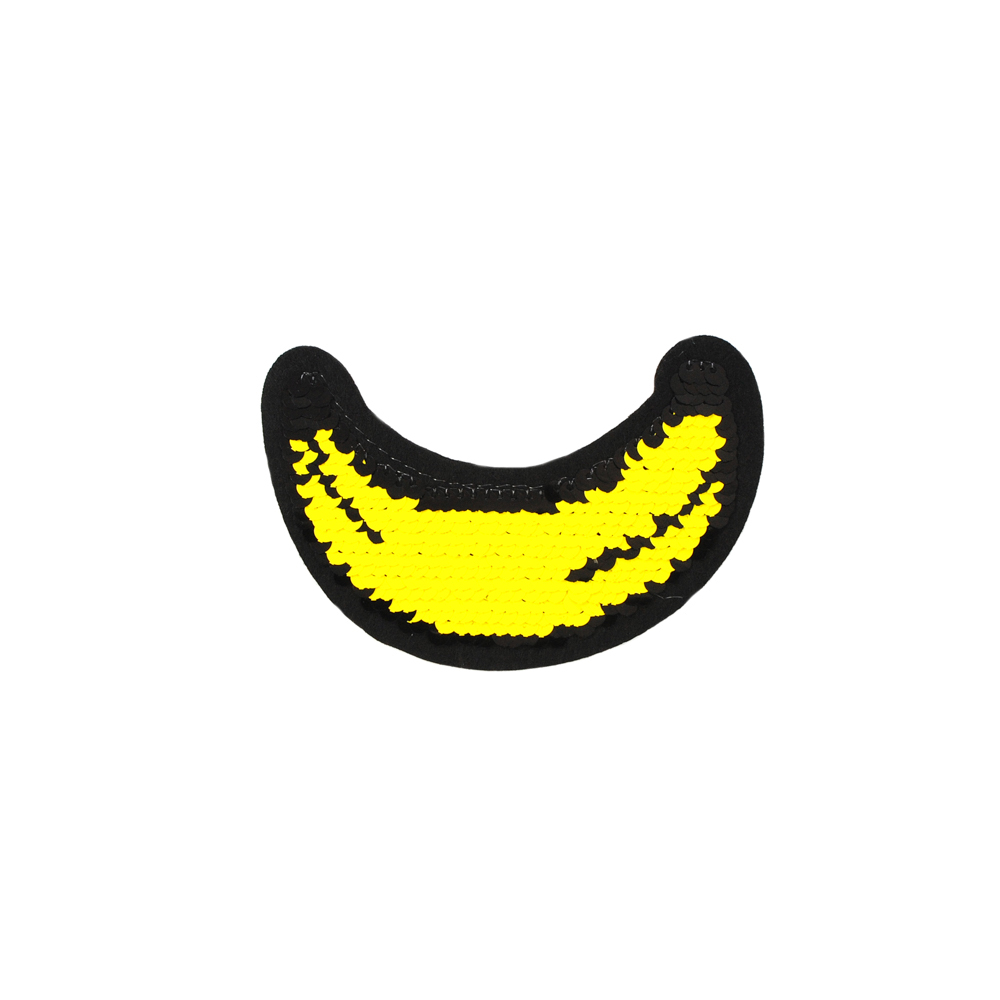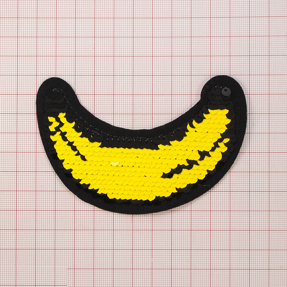 Аппликация клеевая пайетки двусторонняя Банан 7,5*11см, черная, желтая, шт