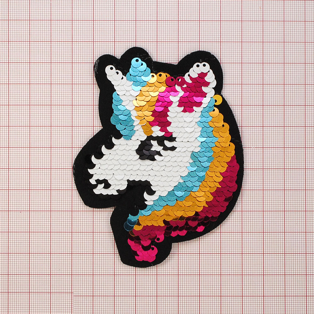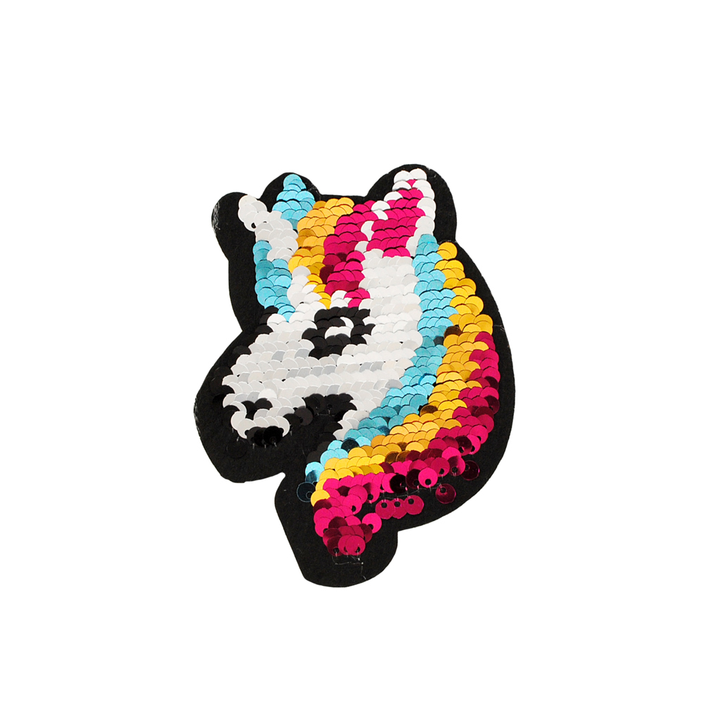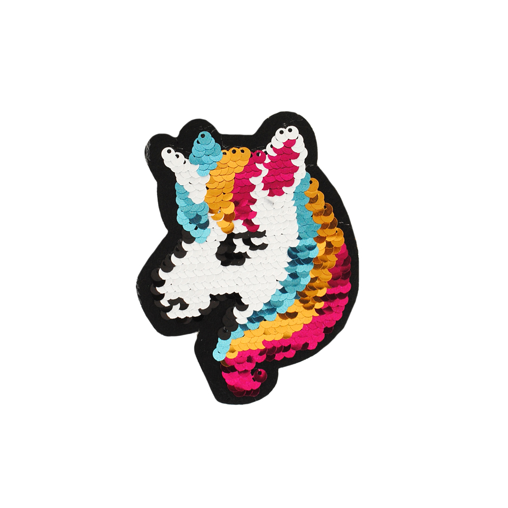 Аппликация клеевая пайетки двусторонняя Единорог голова 11*8см, черный, белый, голубой, желтый, красный, шт