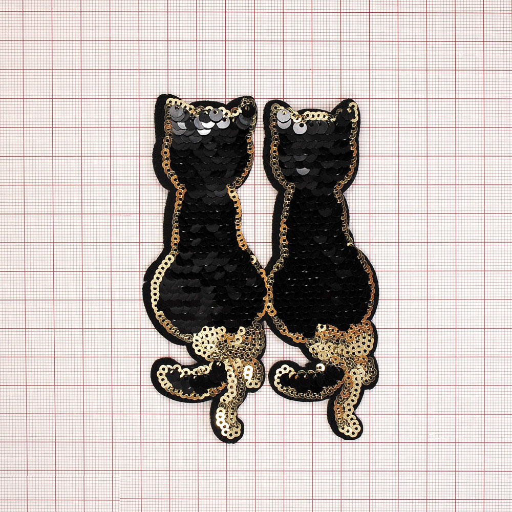 Аппликация клеевая пайетки двусторонняя Кошки 8*12см черный, золото, шт