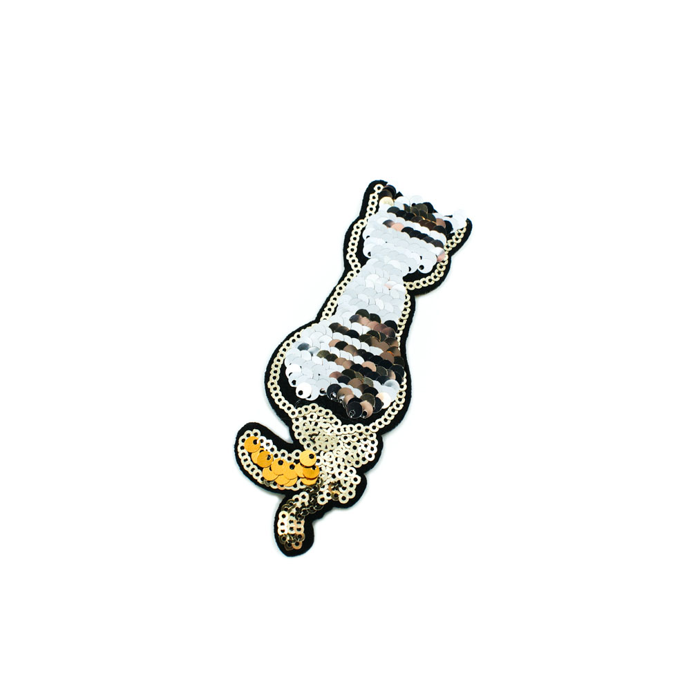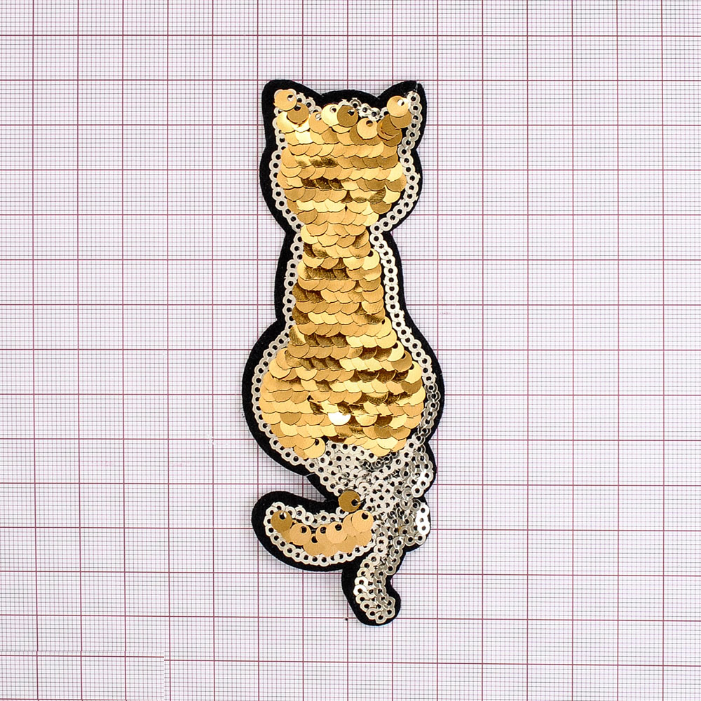 Аппликация клеевая пайетки двусторонняя Котик Спина золото, 12*4см, шт