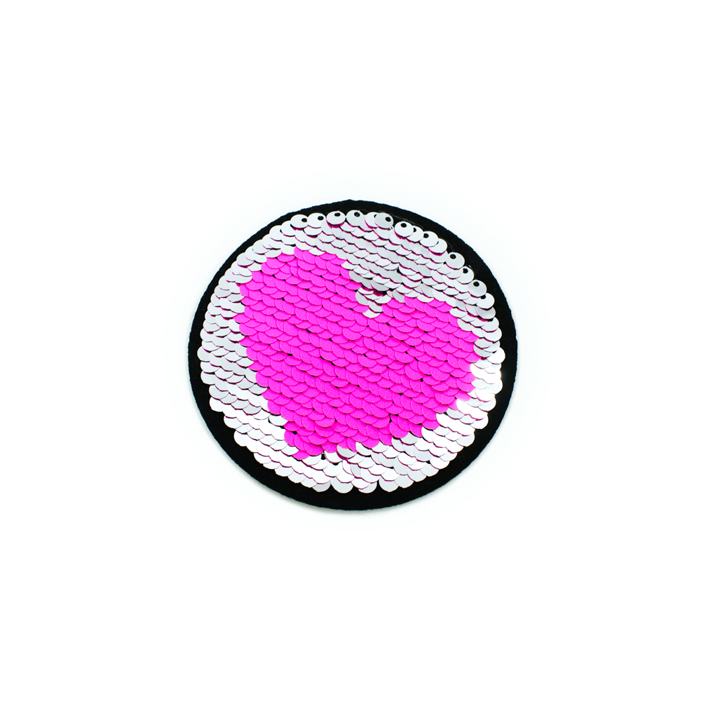 Аппликация клеевая пайетки двусторонняя Сердце в круге малиновые и серые, 8см, шт