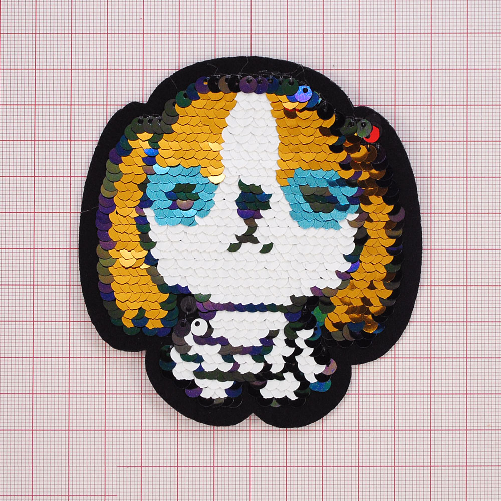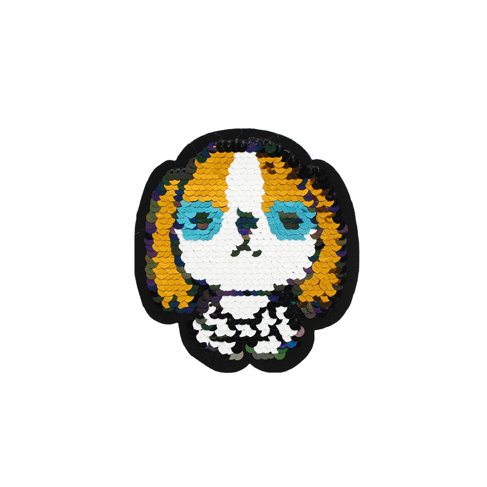 Аппликация клеевая пайетки двусторонняя Собачка 10,5*10см, черный, белый, золото, голубой, фиолетовый, зеленый, шт
