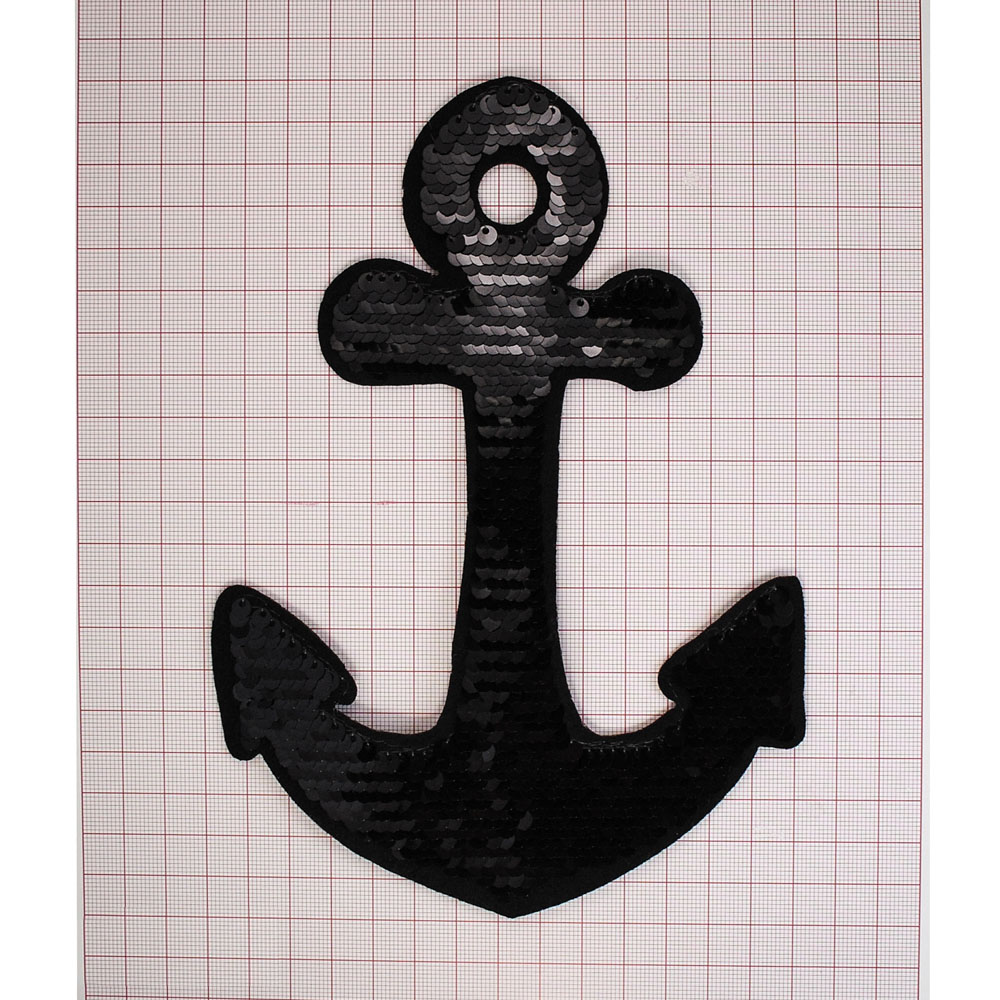 Аппликация клеевая пайетки двусторонняя Якорь 14*20см черный, шт