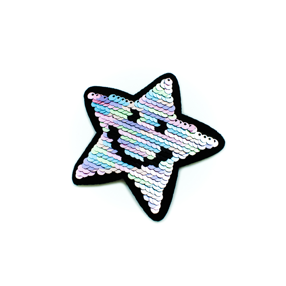 Аппликация клеевая пайетки двусторонняя Звезда Улыбка цветная матовая радуга, черные/серебро , 8*8см, шт