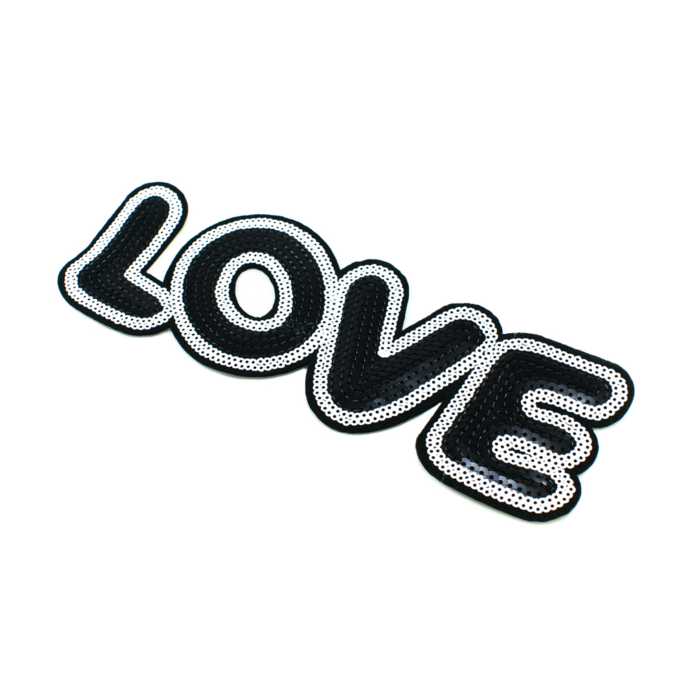 Аппликация клеевая пайетки LOVE 8*23см черный, белый, шт