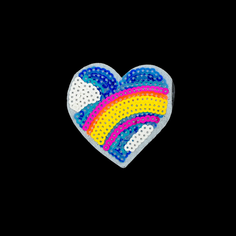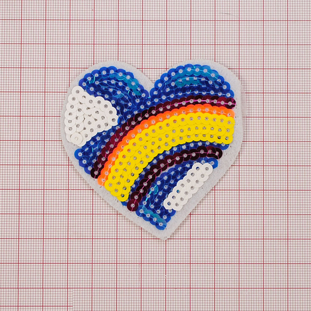 Аппликация клеевая пайетки Сердце 6,5*7см, черный, белый, голубой, желтый, синий, оранжевый, шт
