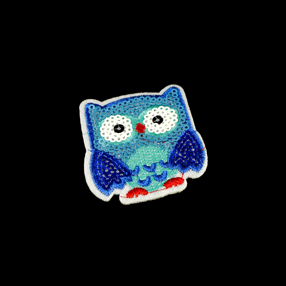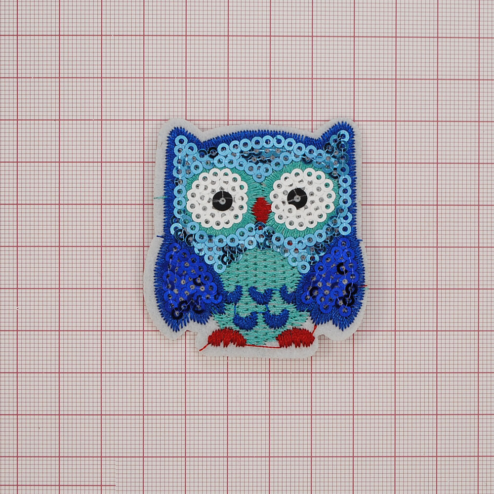 Аппликация клеевая пайетки Сова 5,5*6см синий, зеленый, красный, черный, белый, шт