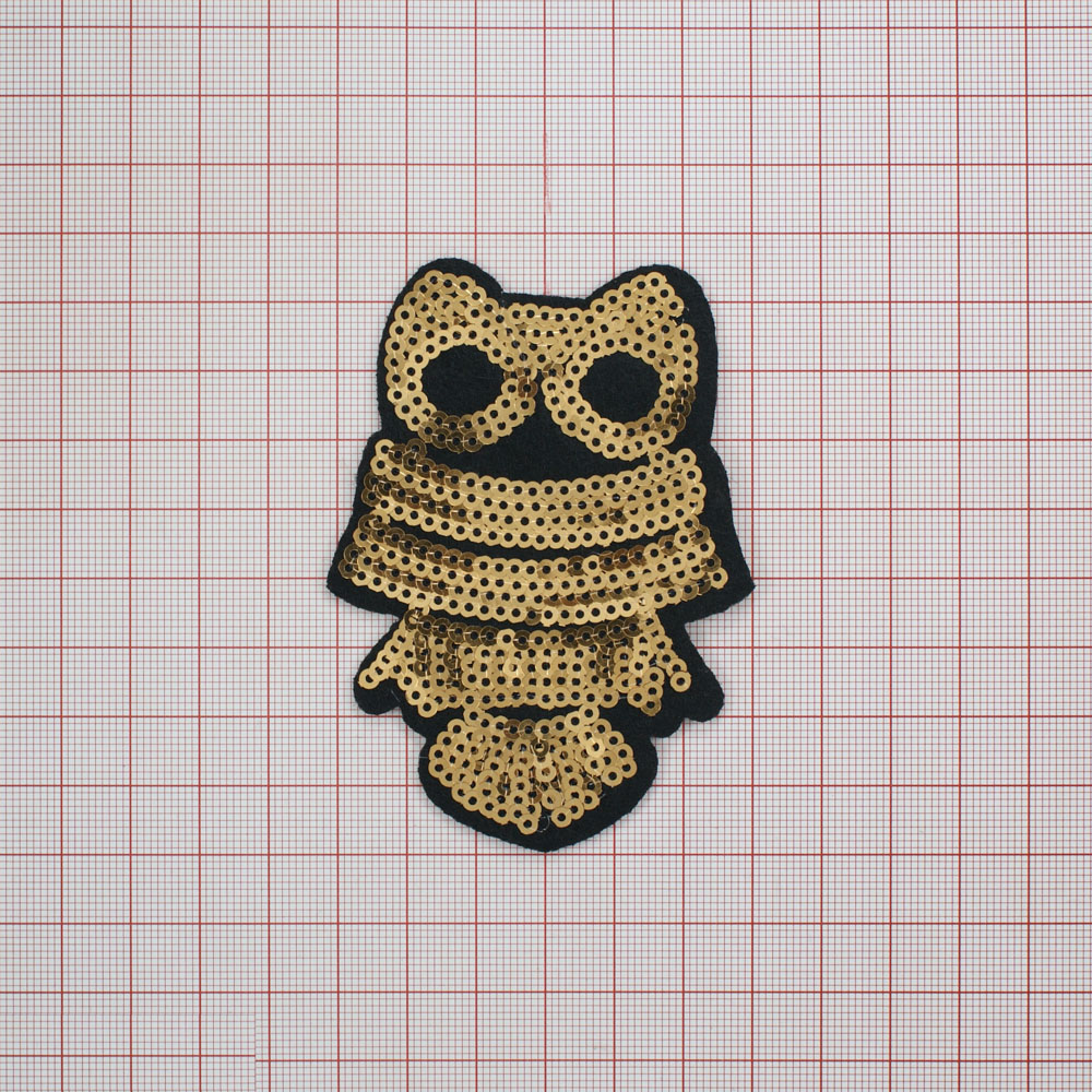 Аппликация клеевая пайетки Сова 6,3*9см золотые пайетки, шт