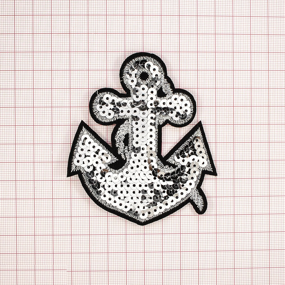 Аппликация клеевая пайетки Якорь 9,5*8,5см серебро, шт