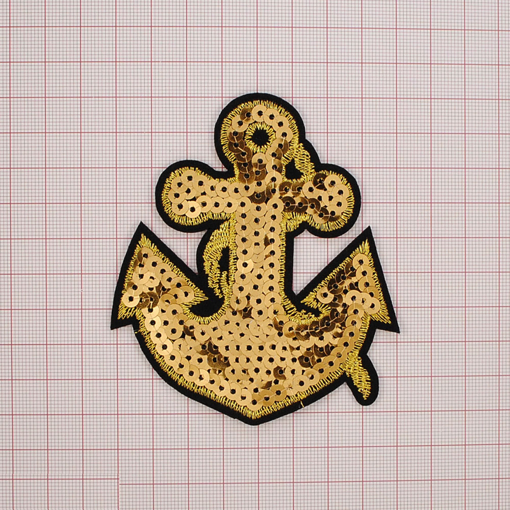 Аппликация клеевая пайетки Якорь 9,5*8,5см золото, шт