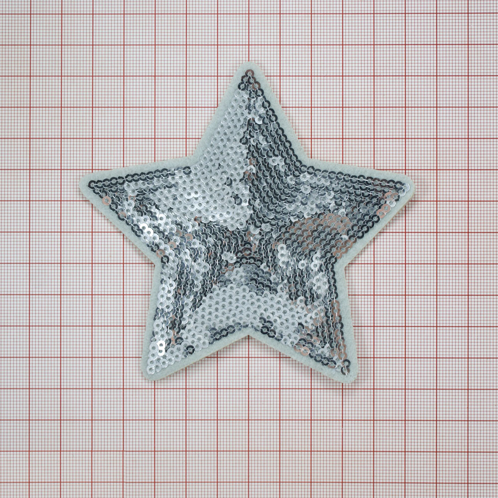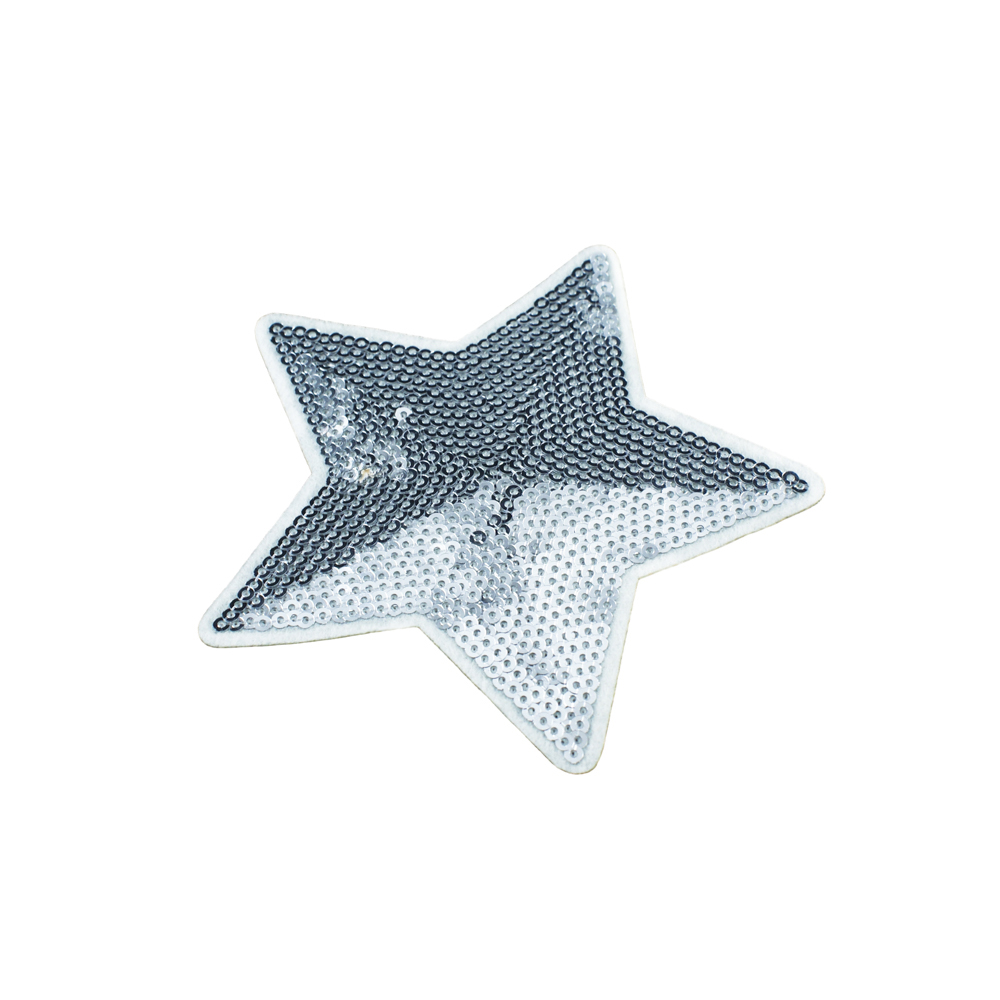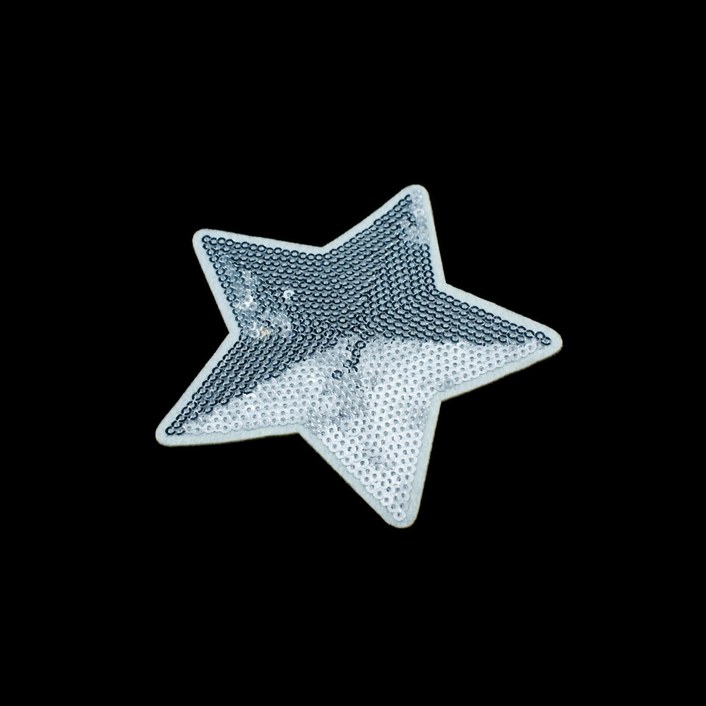 Аппликация клеевая пайетки Звезда 10*10см белый, серебряный, шт