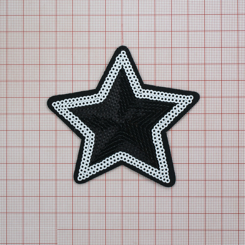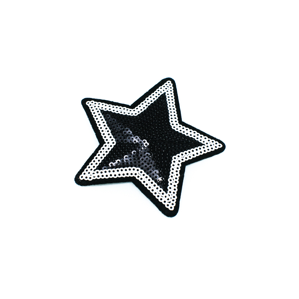 Аппликация клеевая пайетки Звезда 9*9см черные, белые пайетки, шт