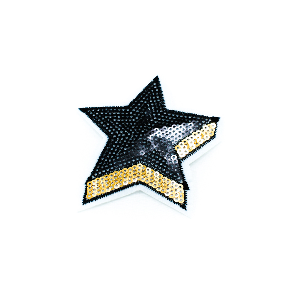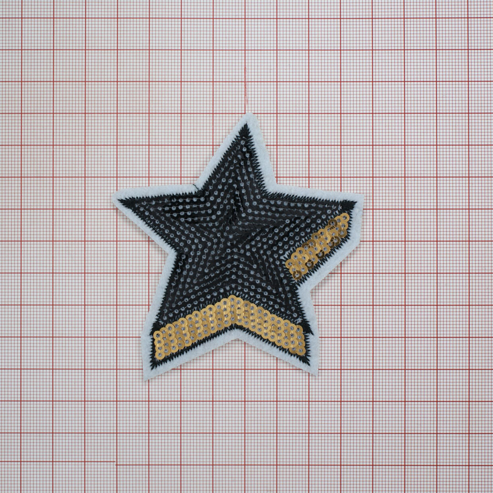 Аппликация клеевая пайетки Звезда с золотой тенью 8*7,5см золотые и черные пайетки, шт