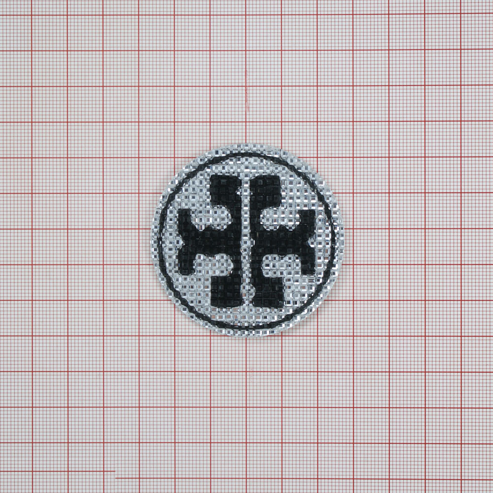 Аппликация клеевая резиновая D125 Крест круг 54мм белый, черный рисунок, шт
