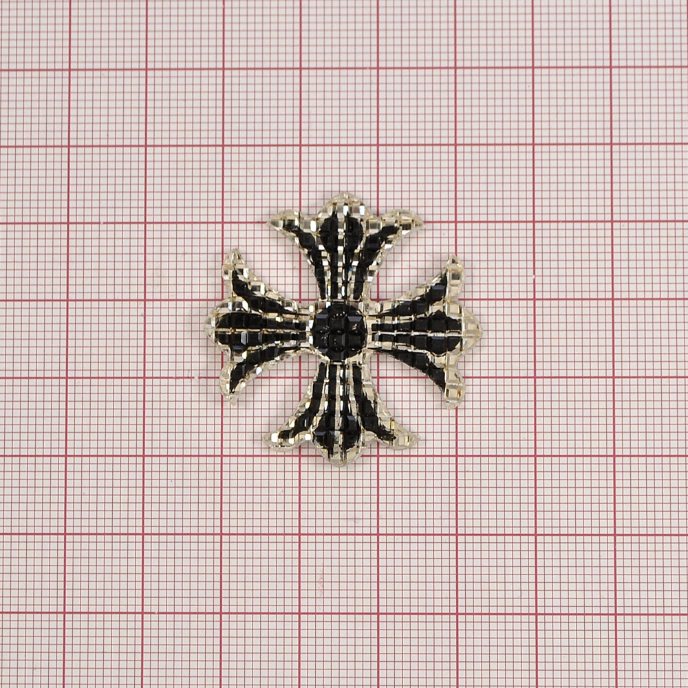 Аппликация клеевая резиновая D164 Крест 35мм фигурный черно-белый, шт