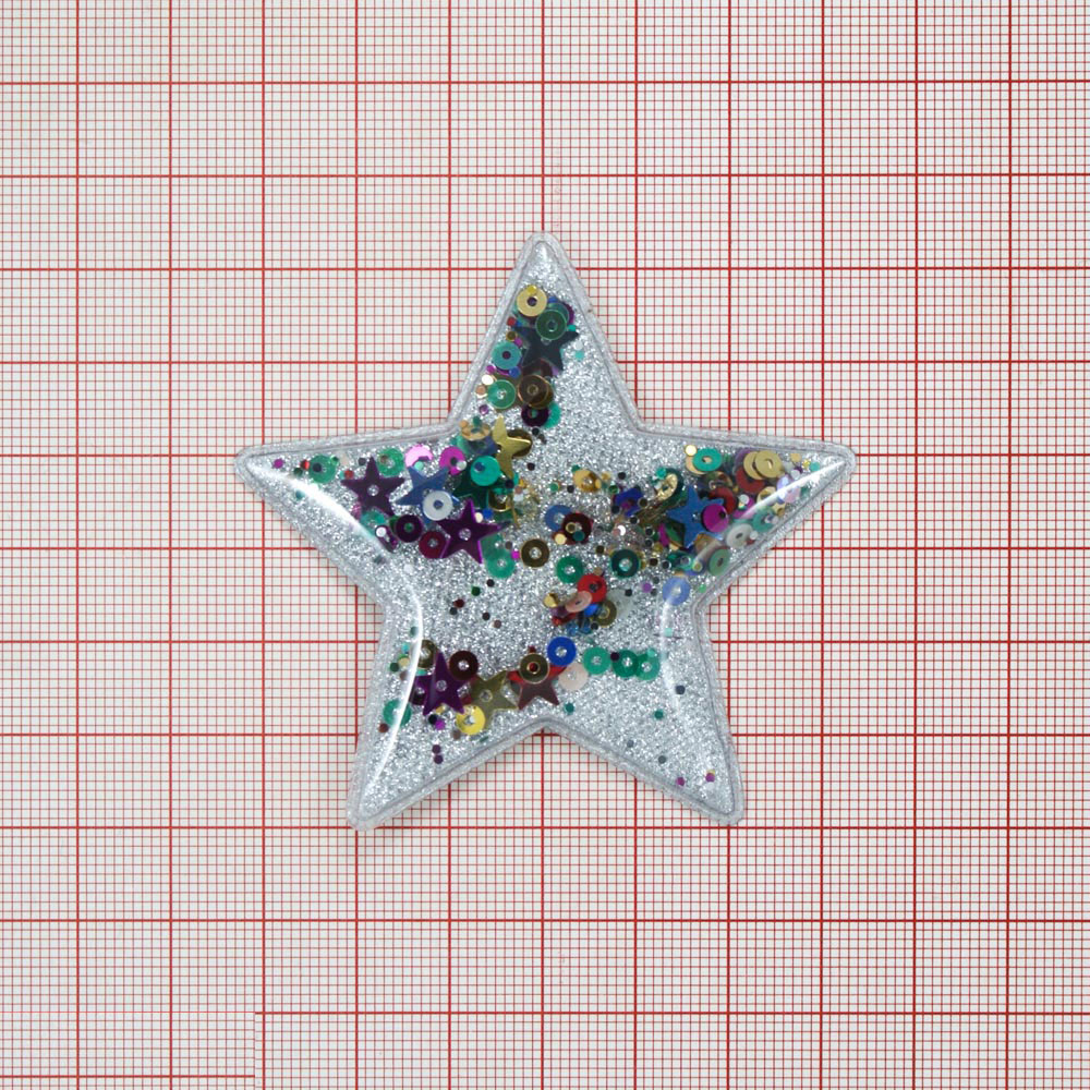 Аппликация клеевая силиконовая Аквариум Звезда 6,7*6,7см серебро, шт