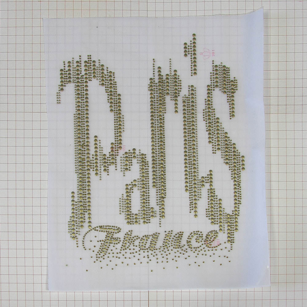Термоаппликация из страз A9006 Paris France Рябь 23,5*28см, металл золото, шт