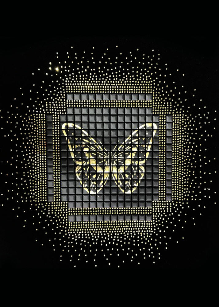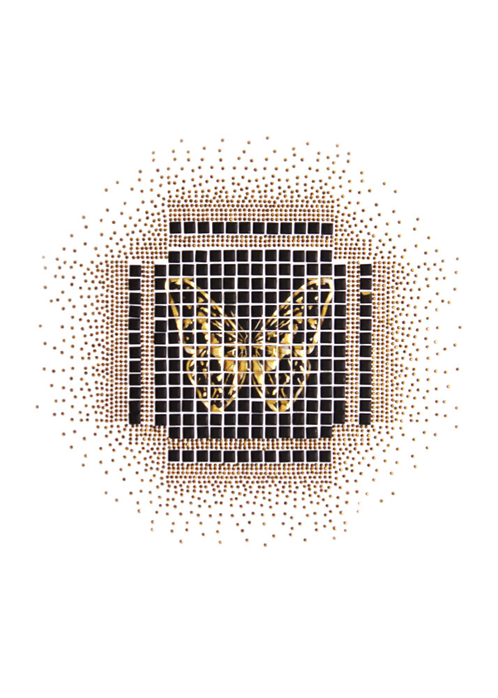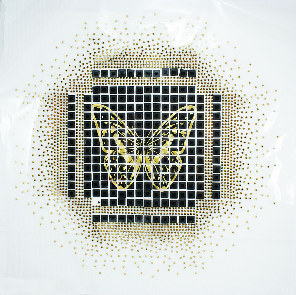 Термоаппликация из страз Бабочка кубики стразы 26*27см золотые и черно-матовые камни, шт