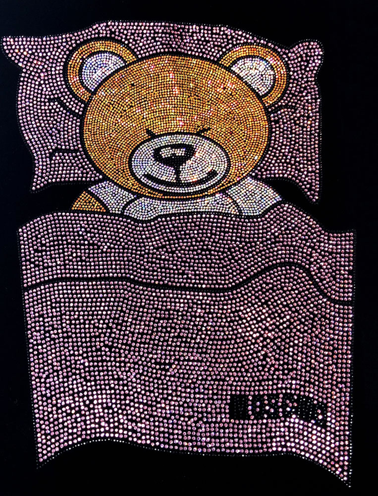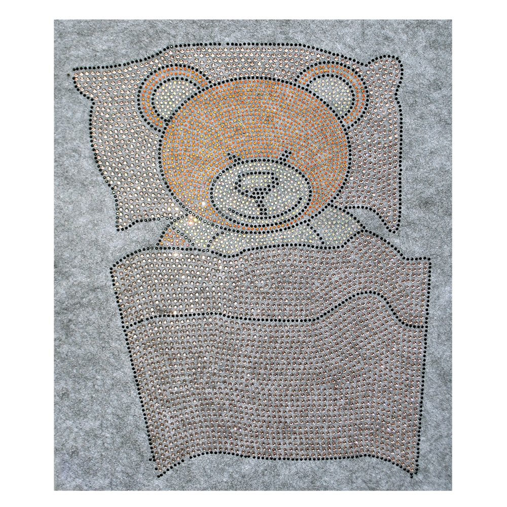 Термоаппликация из страз Мишка в кровати 30*24см, черный, сиреневый, золото, серебро, шт
