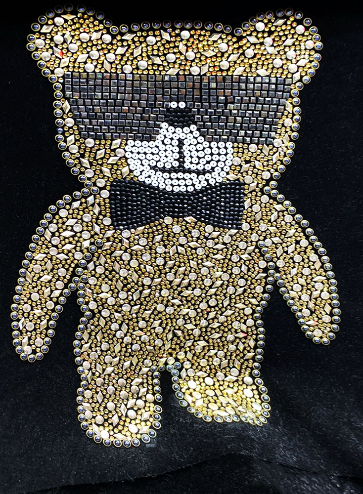 Термоаппликация из страз Мишка в очках 32*22,5см, золото, хематит, белый, шт
