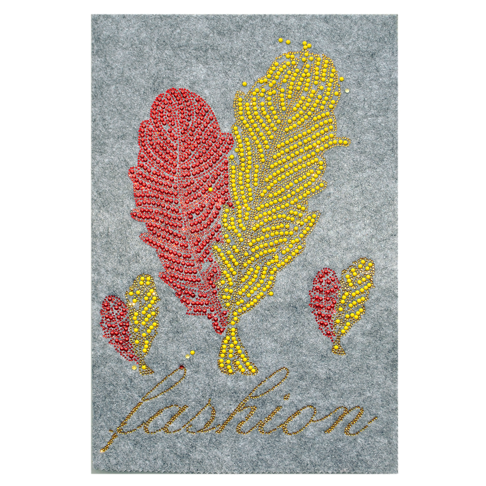 Термоаппликация из страз Перья Fashion 25*43см, красный, желтый, золото, шт