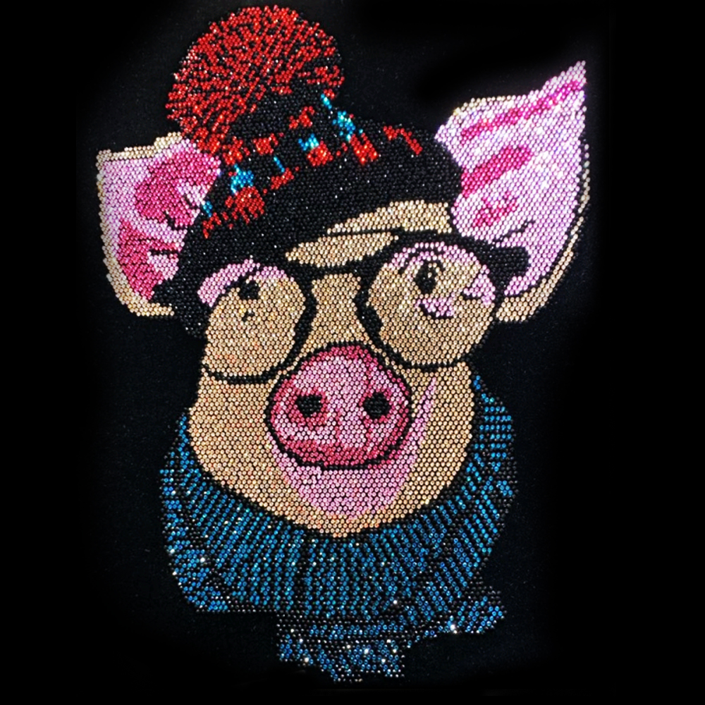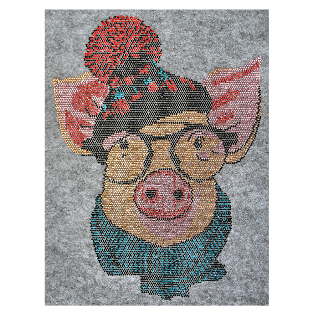 Термоаппликация из страз Поросенок в шапке 33*26см бежевый, розовый, синий, красный, черный, шт