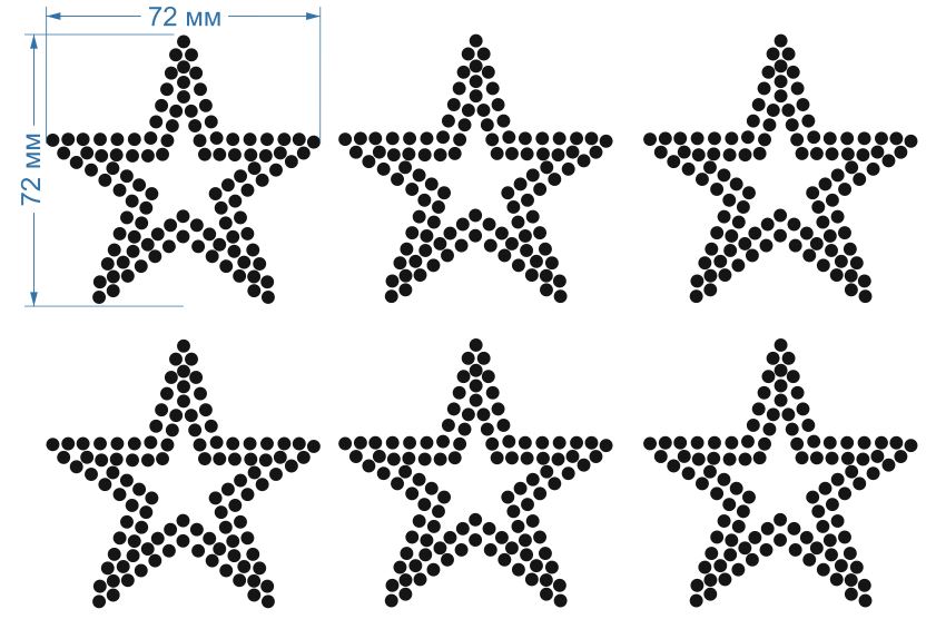 Термоаппликация из страз ЗВЕЗДА средняя контур 7,2*7,2см белый dmc ss10 /6шт на листе/, шт