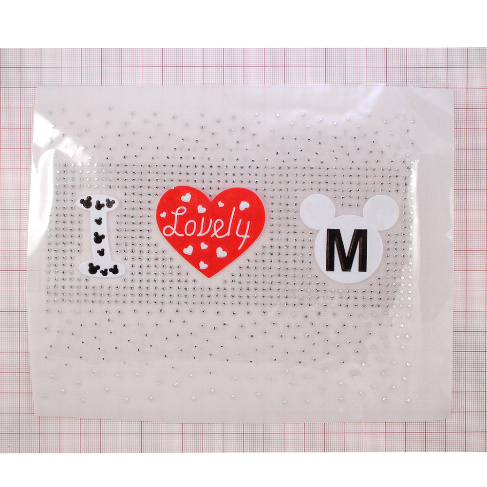 Термоаппликация стразы металл I lovely M Микки, 14*18см, белый, черный, красный, никель, шт