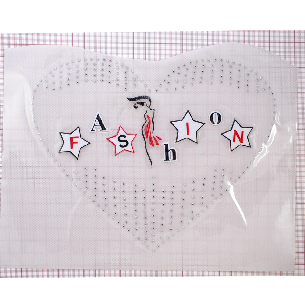 Термоаппликация стразы металл Сердце Fashion, 15,5*21см черный, белый, красный, шт
