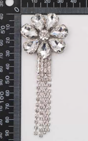 Аппликация клеевая из страз Цветок с подвесками, белый, шт