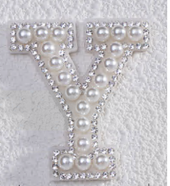 Аппликация клеевая со стразами Буква Y, 4,9*4,3см, белый, жемчуг, шт
