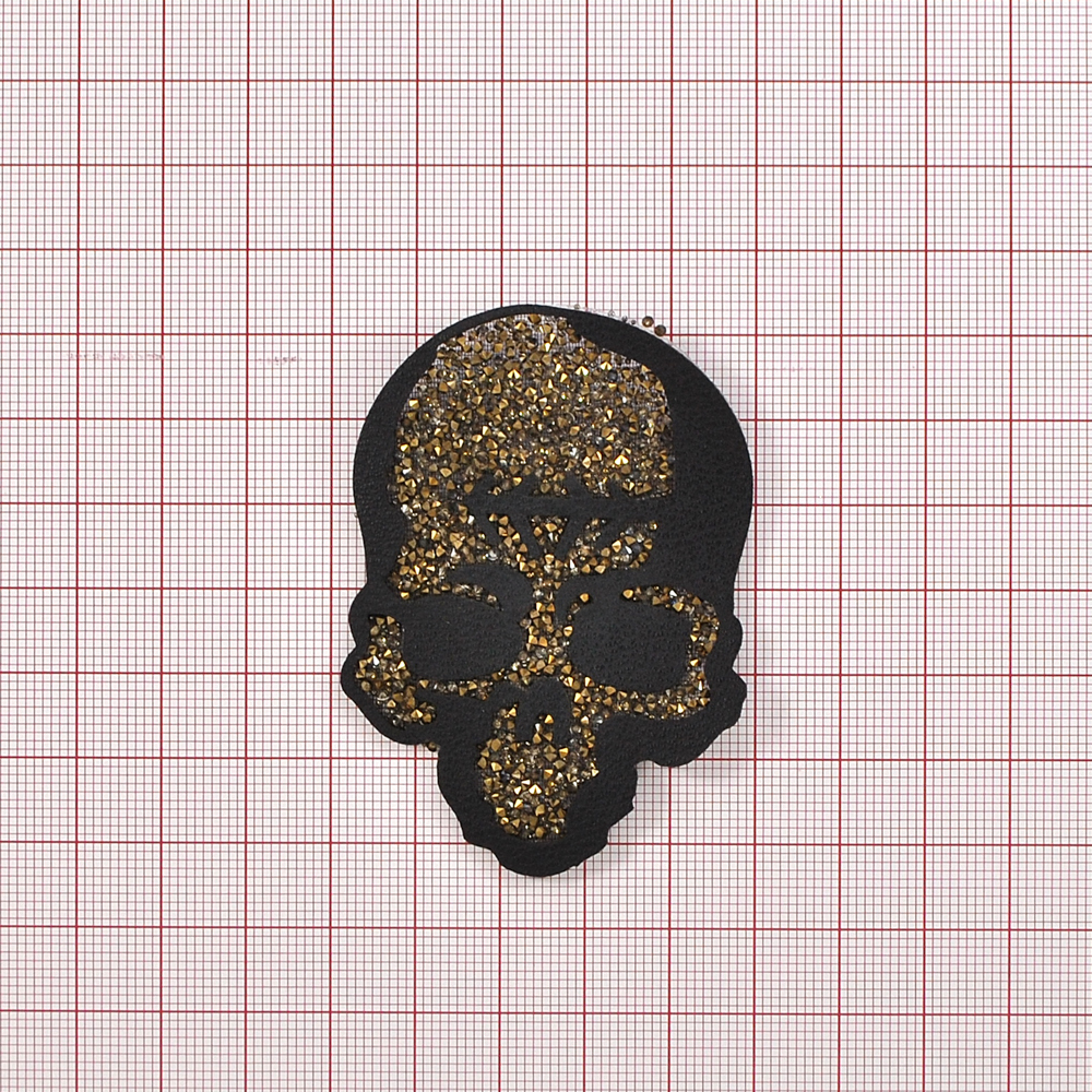 Аппликация клеевая со стразами Череп, 6,5*5см, черный, золото, шт