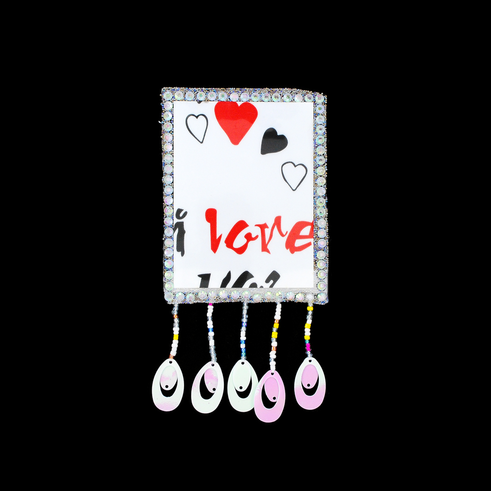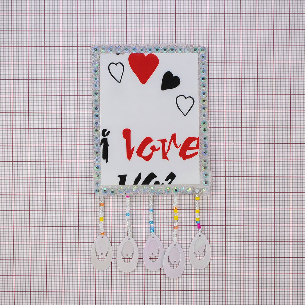 Аппликация клеевая со стразами и бахромой, I LOVE, 7*9мсм белый, черный, красный, белые камни, шт
