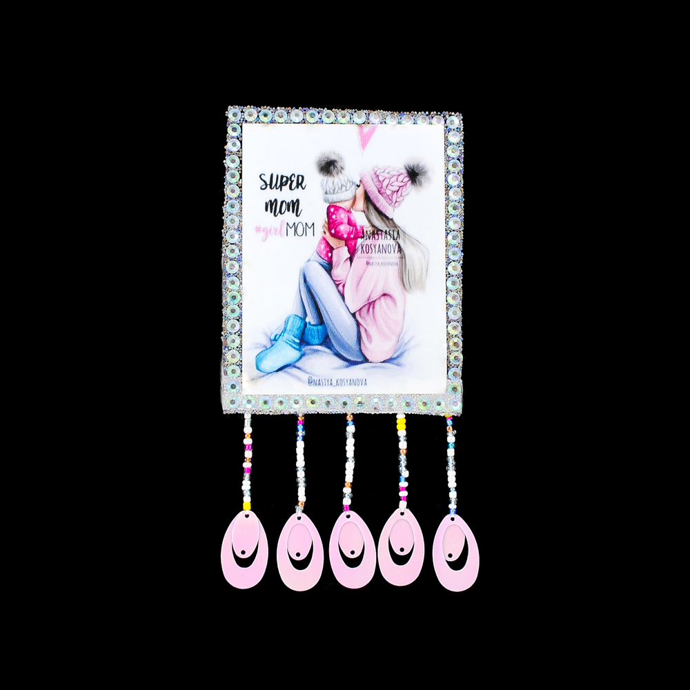 Аппликация клеевая со стразами и бахромой SUPER MOM, 7*9см, белый., розовый, голубой, черный, белые камни, шт