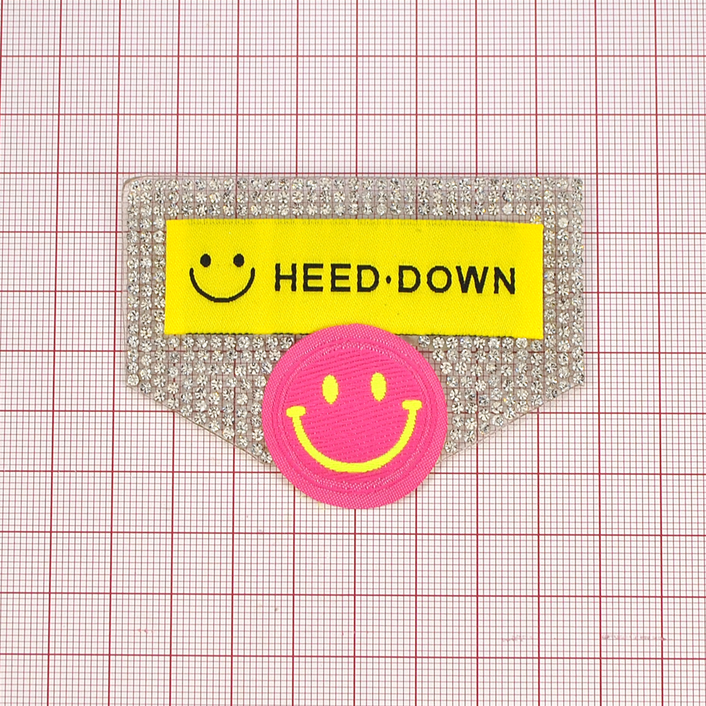 Аппликация клеевая со стразами Карман Смайл HEED, 5,5*7,5см, желтый, розовый, черный, серебро, шт