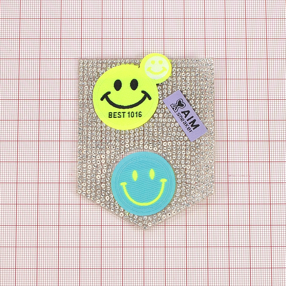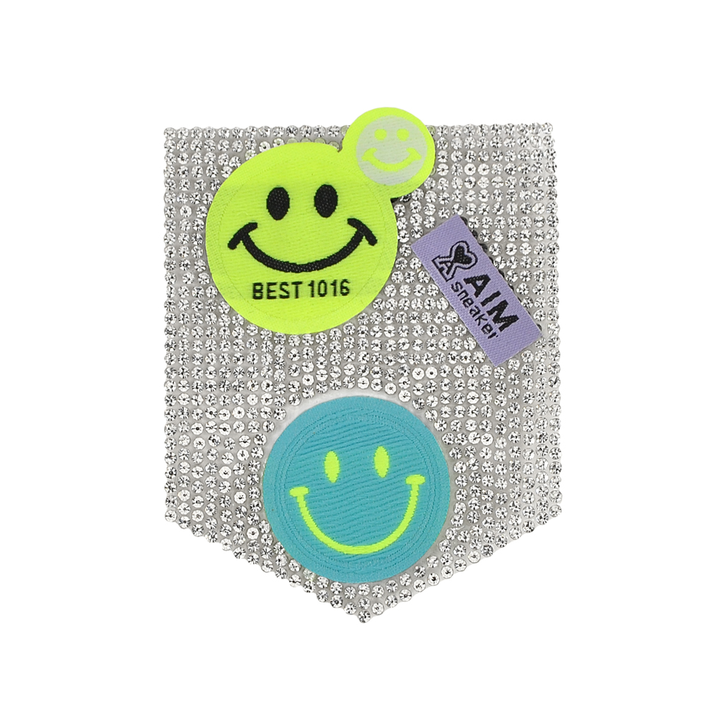 Аппликация клеевая со стразами Карман Смайлы AIM, 8*6,5см, голубой, салатовый, фиолетовый, черный, серебро, шт