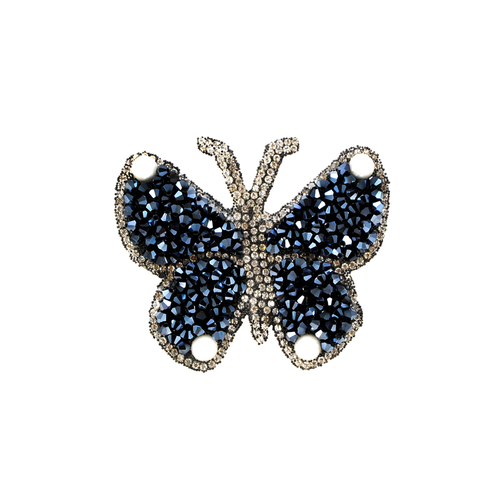 Узоры стразами являют собой изящный вариант декора, приковывающий к себе взгляды с помощью сияющих кристаллов. Аппликации в форме бабочки - это невероятно популярное украшение для женской одежды различных стилей, а черные камни придадут элегантности изделию.