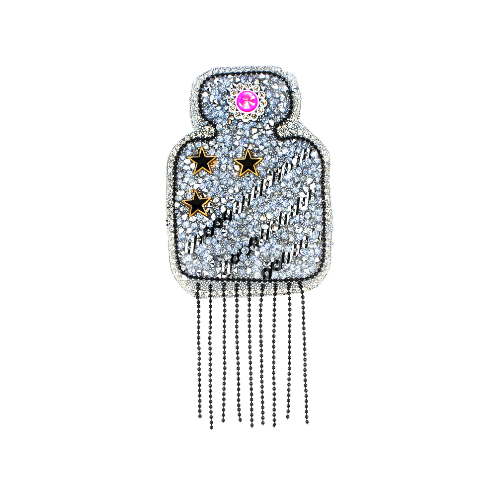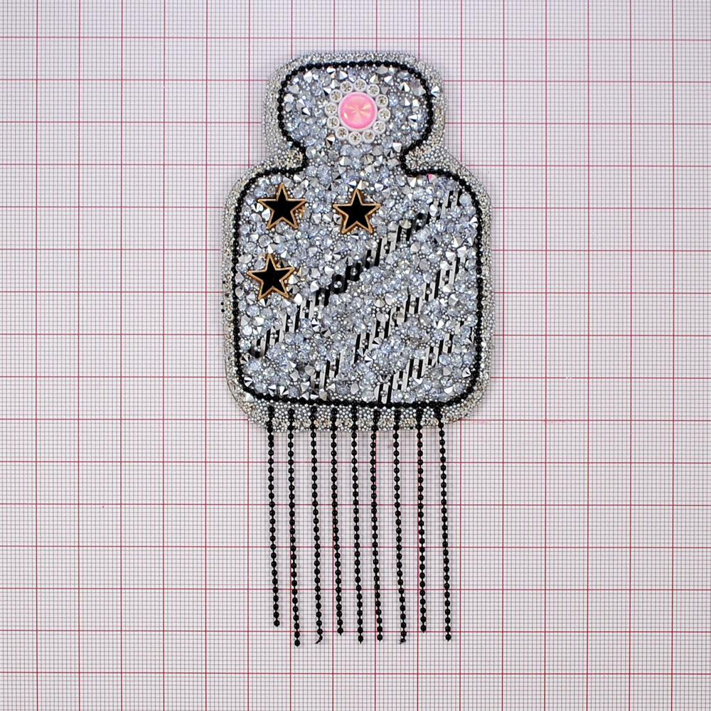 Аппликация клеевая стразы бахрома Флакон, 6,6*8,8см, черный, белый, розовый, шт