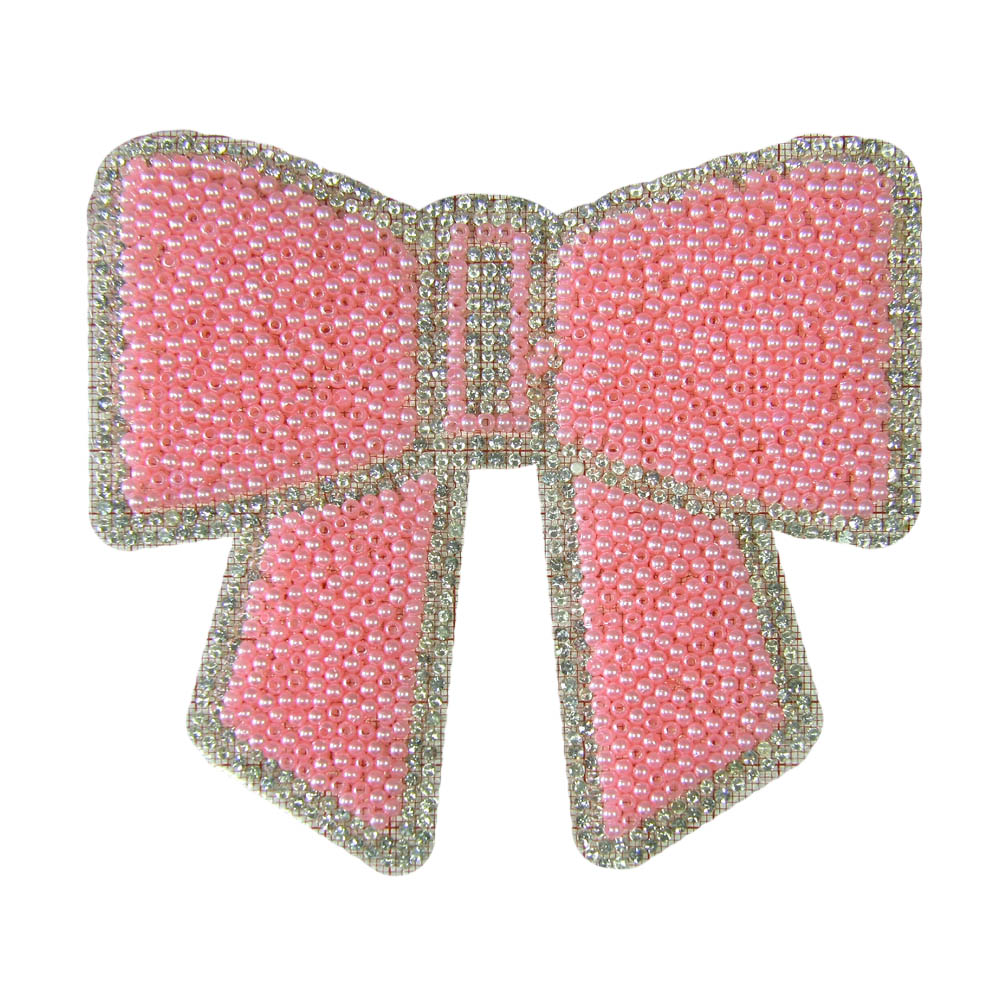 Аппликация клеевая стразы БАНТ 12,5*12см розовый жемчуг бисер, кристальные камни, шт