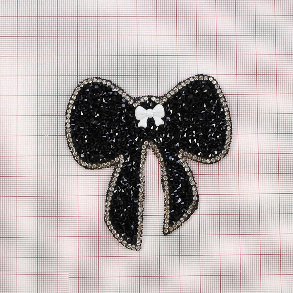 Аппликация клеевая стразы Бант и бантик 9*8,5см, черный, белый, шт