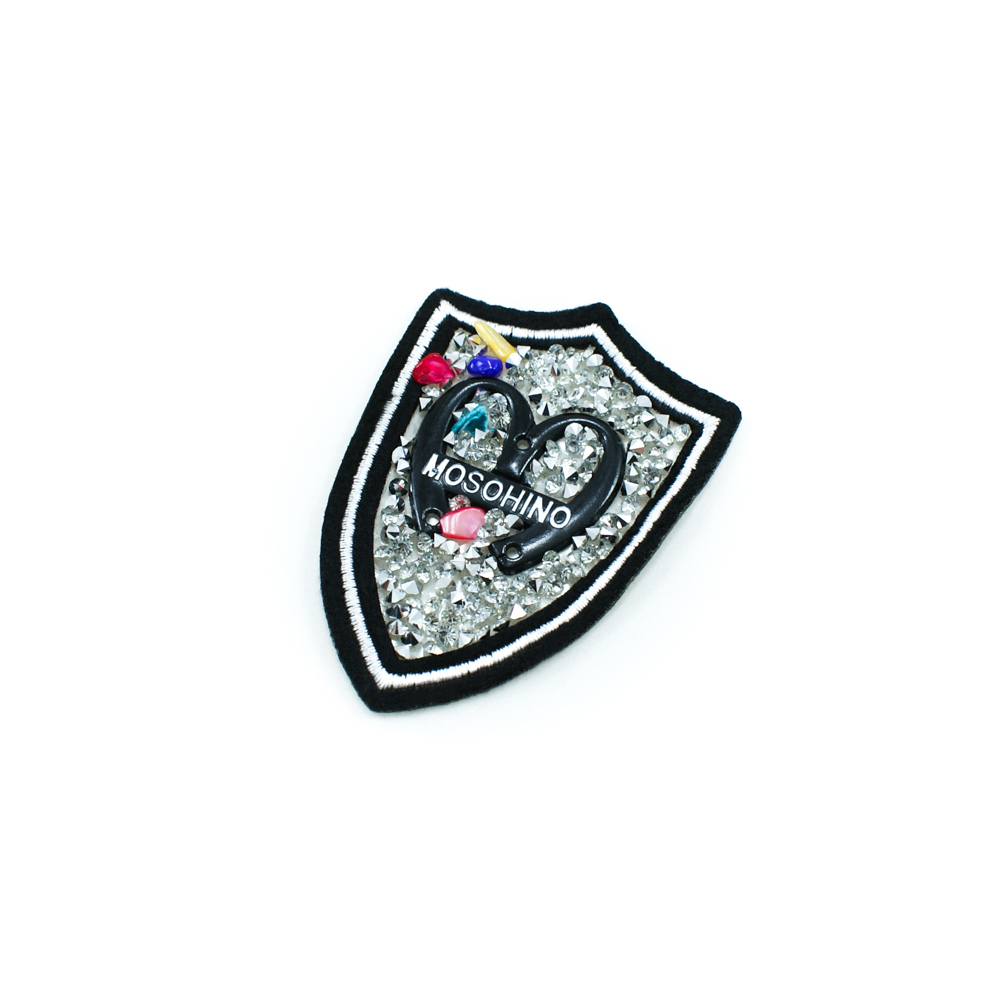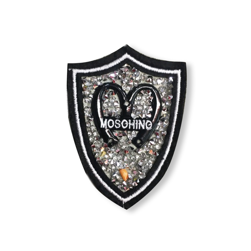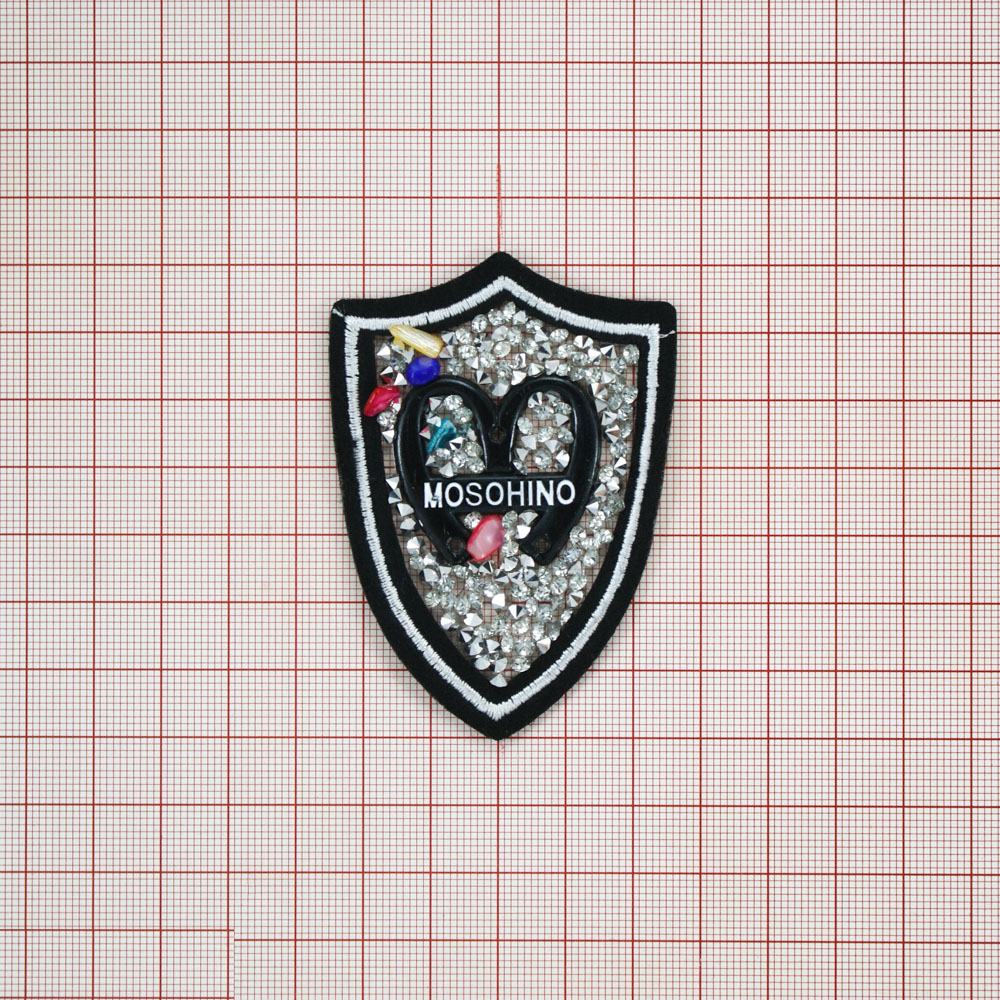 Аппликация клеевая стразы Эмблема MOSOHINO 5*7см черный, белый, камни белый, металл белый, черный, шт.