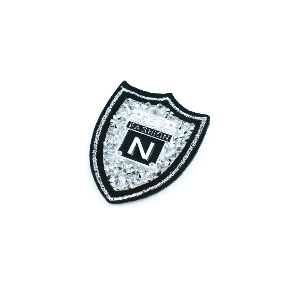 Аппликация клеевая стразы Эмблема Шеврон 5*7см черный, белый, золотой, белые камни, шт