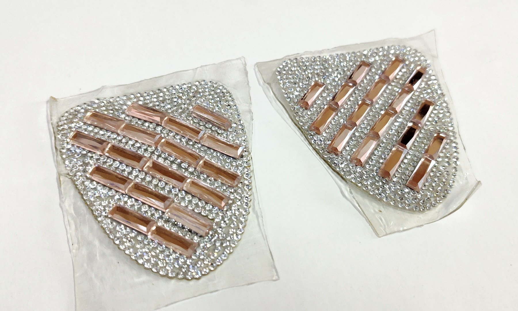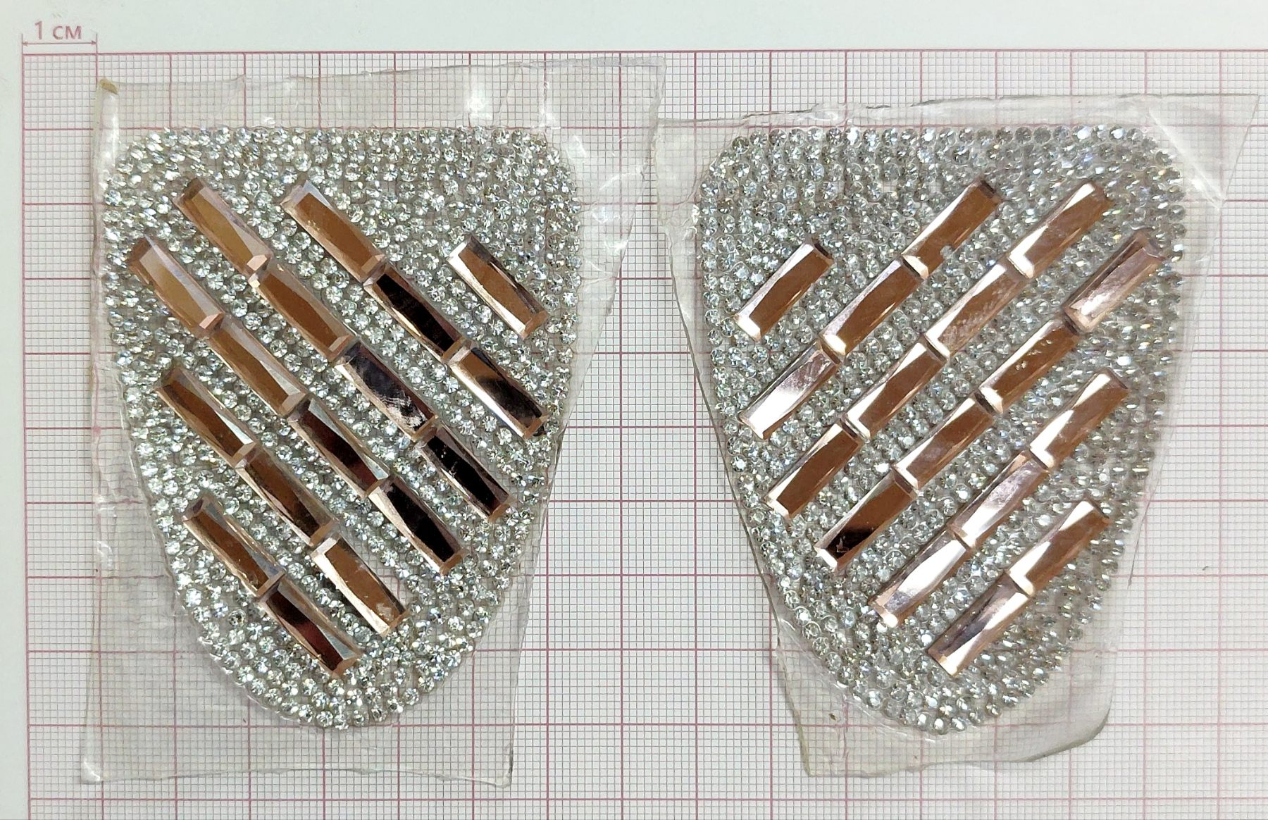 Аппликация клеевая стразы Эполет-диагональный ряд 8,2*6см янтарные прямоугольники 10*5мм, белая мелкая россыпь, шт
