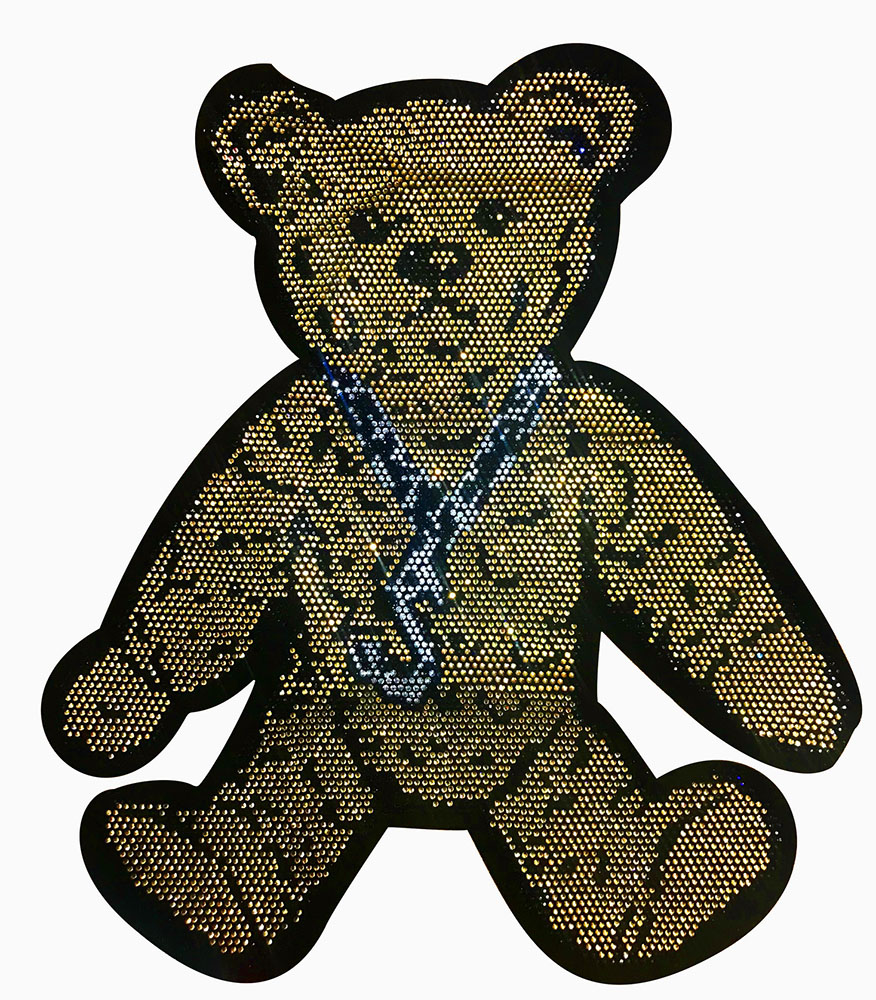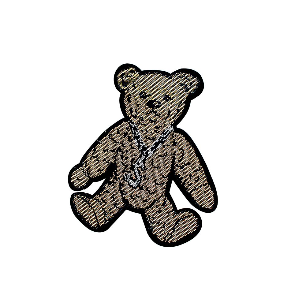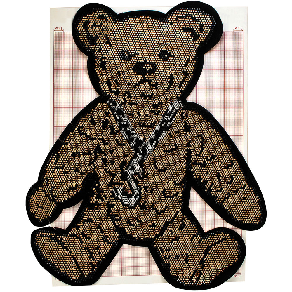 Аппликация клеевая стразы флок Медведь с цепью 30*27см, золото, черный, белый, шт