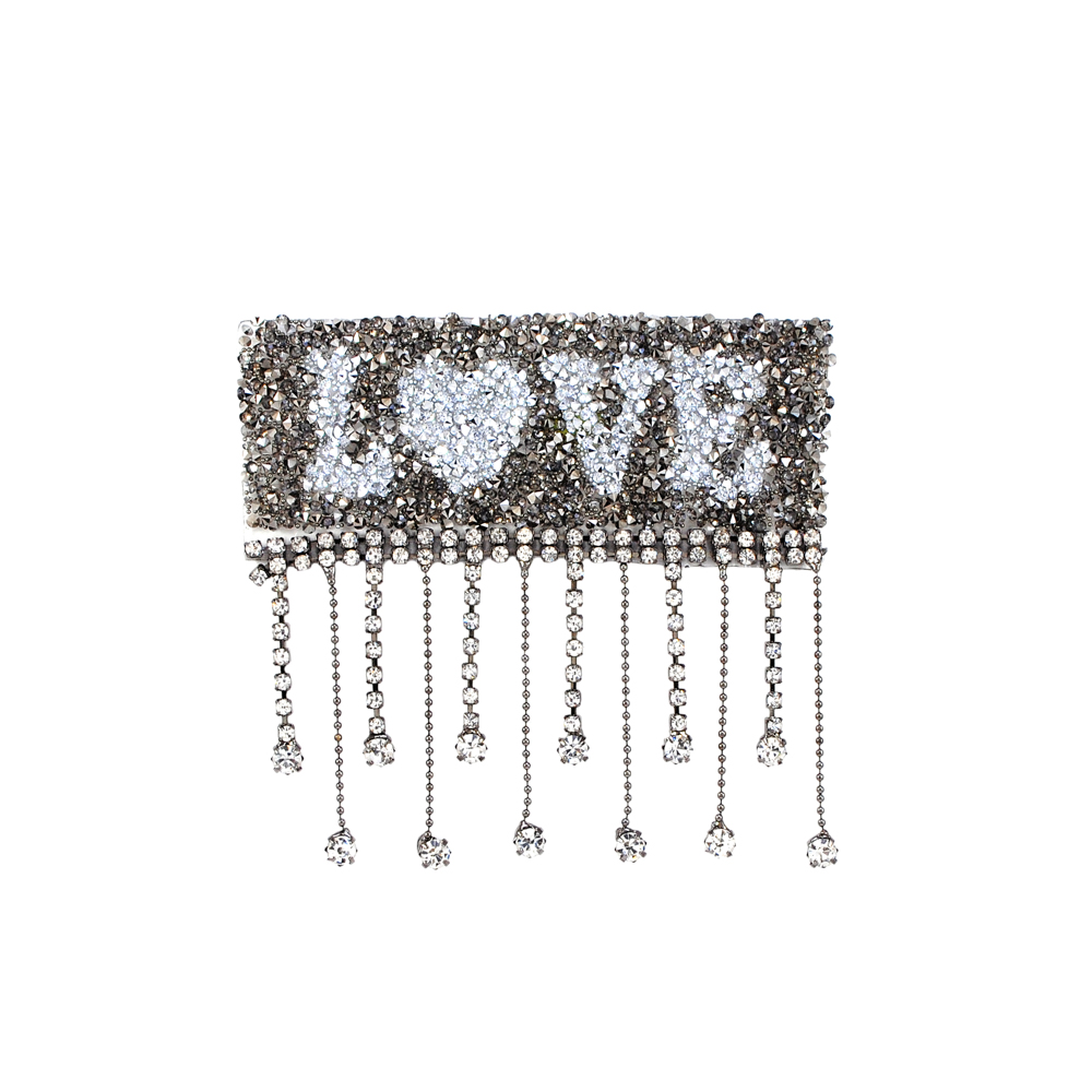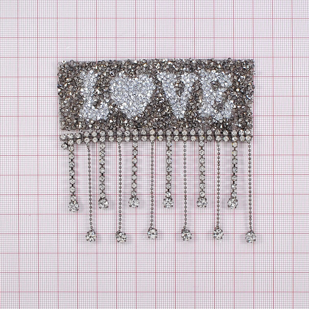 Аппликация клеевая, стразы гречка и бахрома, LOVE, 10*8.5см, белый, никель серый, шт