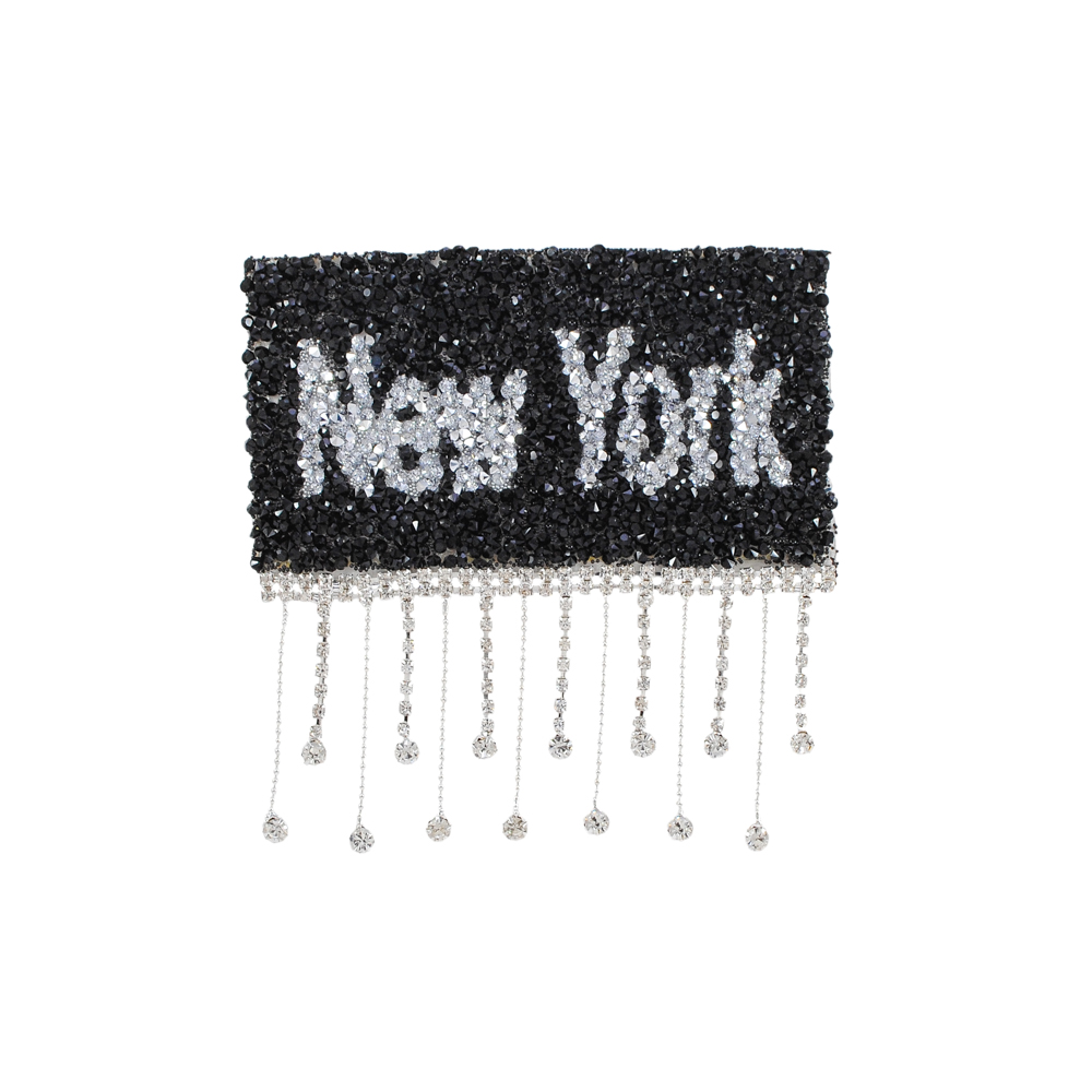 Аппликация клеевая, стразы гречка и бахрома, New York, 12,5*12см, белый, черный, никель, шт