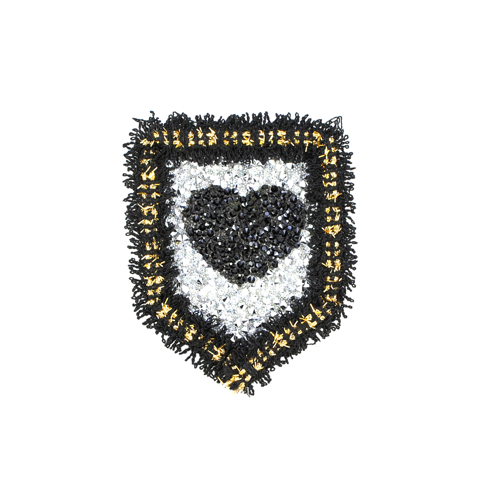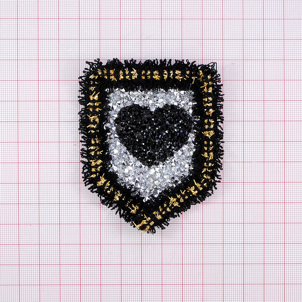 Аппликация клеевая, стразы гречка и бахрома, Сердечко, 0,5*8см, белый, черный, золото, шт